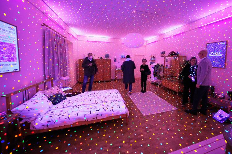 Works include her series “My Eternal Soul, 2009-2021,” including a patchwork of paintings, to “The Universe as Seen from the Stairway to Heaven” — made of mirror, glass and acrylic sheet. The museum entrance hosts her widely-recognized 2009 “Pumpkin” of fiber-reinforced plastic and polyurethane paint, belonging to Museum Voorlinden in the Netherlands.